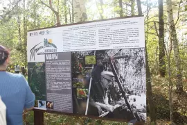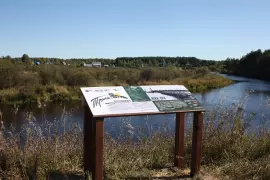 И вот новое яркое впечатление – через много-много лет – в октябре 2017 года на конференции в национальном парке «Мещёра». Получаю возможность пройти по ещё не открывшейся Тропе Паустовского, работы по созданию которой уже близятся к завершению. О ней я узнала из рассказа Наташи Буториной, заместителя директора Экоцентра «Заповедники», моей выпускницы и верного друга, которая с друзьями-географами участвовала в её проектировании и настойчиво рекомендовала посетить. Для этого надо было переехать из Владимирской области, где проходила конференция, в Рязанскую, где пролегает тропа Паустовского. Этот путь мы проделали с коллегами из рязанской Мещёры в последний день конференции.