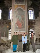 Масляная живопись академического направления сохранилась на сводах алтаря и четверика, на западной и частично на других стенах и столбах.