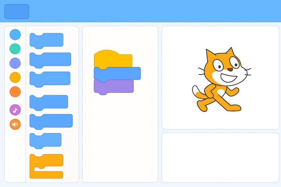 Scratch - идеальная точка входа. Его блочный интерфейс полностью убирает страх перед ошибками в синтаксисе. Ребенок перетаскивает готовые команды ("идти", "повернуть", "сказать"), соединяет их и сразу видит результат. Это наглядно демонстрирует, что такое циклы, условия и переменные, не перегружая теорией. Scratch - это песочница, в которой можно безопасно экспериментировать и творить.