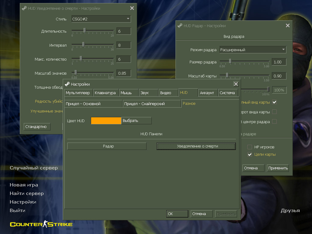 Настройки полностью портативны, не используют системный реестр и легко переносятся между системами — редкость для CS 1.6.