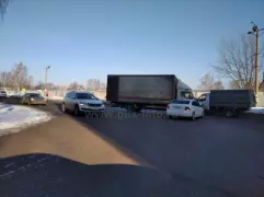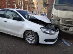 Авария напротив стадиона "ТРУД". 16 февраля 2022 г. Водитель грузового автомобиля FAW не уступил дорогу легковому автомобилю Volkswagen. Автомобиль Volkswagen сильно повреждён.