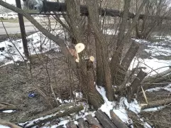 Так городские электросети в Гусь-Хрустальном кронируют деревья под своими электрическими сетями. Оставленные пеньки и валяющиеся рядом спиленные стволы вызывают у жителей неприятные чувства. Горэлектросеть показывает отвратительный подход к своей работе.