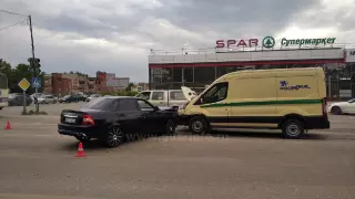 Напротив магазина "SPAR" легковой автомобиль ВАЗ столкнулся с инкассаторским автомобилем FORD. Напротив магазина "SPAR" легковой автомобиль ВАЗ столкнулся с инкассаторским автомобилем FORD.