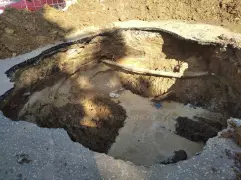 Работники городского Водоканала устраняют прорыв под дорогой на пересечении улицы Калинина и проспекта Теплицкий. Работники городского Водоканала устраняют прорыв под дорогой на пересечении улицы Калинина и проспекта Теплицкий.