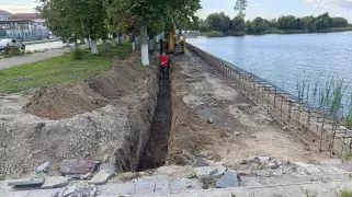 Реконструкция набережной городского озера. 14 августа 2025г.