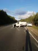Авария на окружной дороге. 5 сентября 2021 г. 5 сентября на окружной дороге (трасса Р-132 Золотое кольцо) произошло ДТП в результате которого автомобиль Mazda перевернулся на крышу. По счастливой случайности водитель сильно не пострадал.
