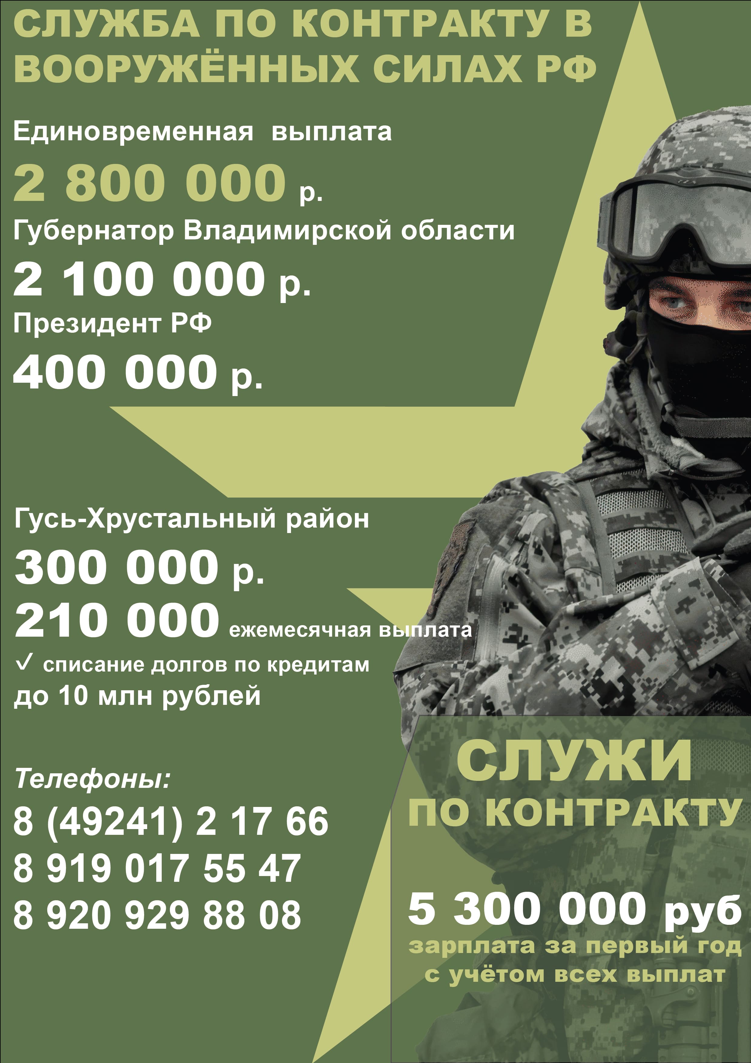 Служба по контракту в Вооружённых Силах РФ от Гусь-Хрустального района