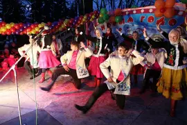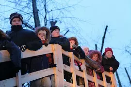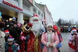 Открытие ёлки и городка превратилось в сказку для взрослых и детей. Юных горожан поздравили с наступающим праздником костюмированные персонажи: Дед Мороз и Снегурочка, Солнышко, Дед-Жара, Емеля, Скоморохи…