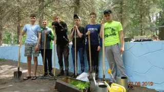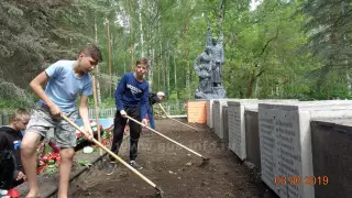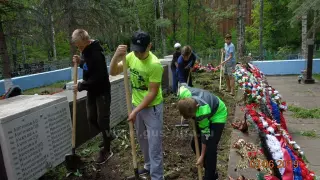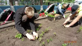 Каждый год 8 мая весь город принимает участие в памятном шествии по возложению венков и цветов к братской могиле. К этому дню в городе проводятся мероприятия по благоустройству братской могилы, высадка тюльпанов, которые будут радовать жителей города в течение месяца. Как благоустроить могилу в июне? Этот вопрос задал администрации школы учитель технологии Бурыкин М.В., активный участник поискового движения. Михаил Васильевич вместе с обучающимися 7-8 классов вырастил рассаду бархатцев, которые предстояло высадить на братскую могилу. По согласованию с городской администрацией и Комитетом по благоустройству и озеленению города, 3 июня текущего года шесть добровольцев школы: Засыпкин Данил, Ратников Денис, Андреев Игорь, Гиляревский Константин, Панин Максим и Киреев Илья под руководством Бурыкина М.В. произвели высадку рассады на братскую могилу.