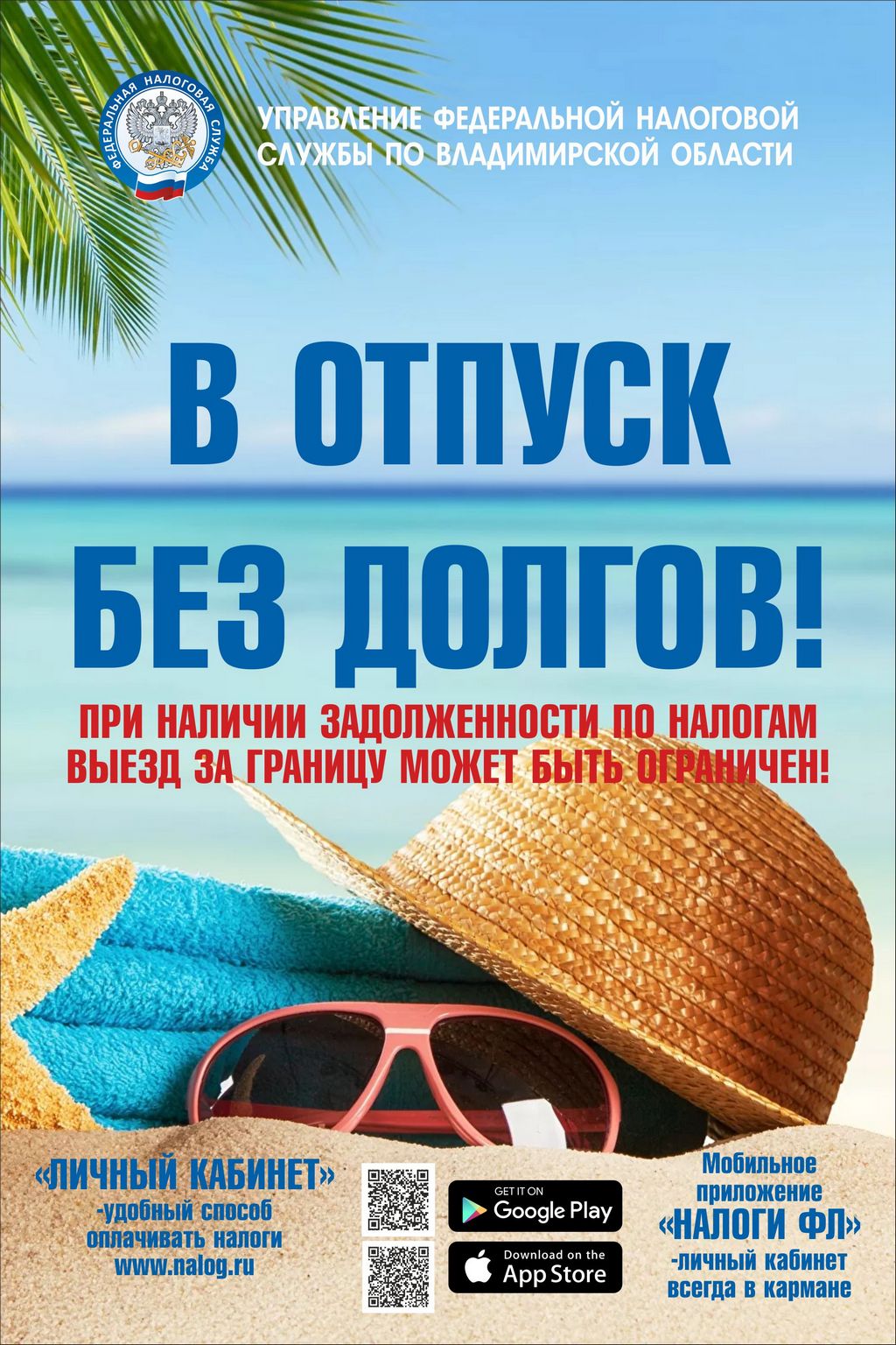 В преддверии отпускного сезона УФНС России по Владимирской области рекомендует заранее убедиться в отсутствии долгов по налогам. Непогашенная задолженность является основанием для обращения за ее взысканием в службу судебных приставов, которые имеют право ограничить выезд должника за пределы России.