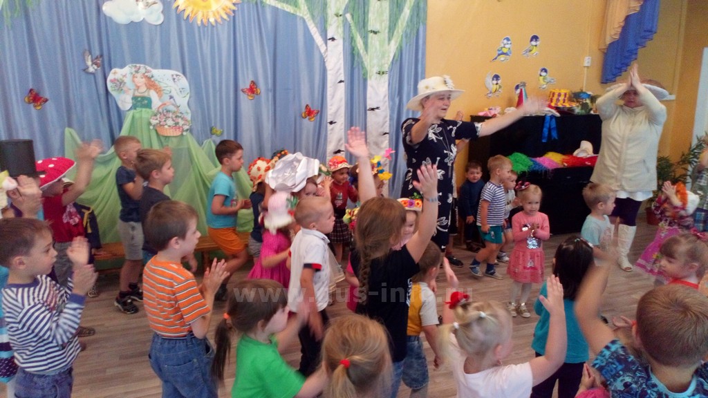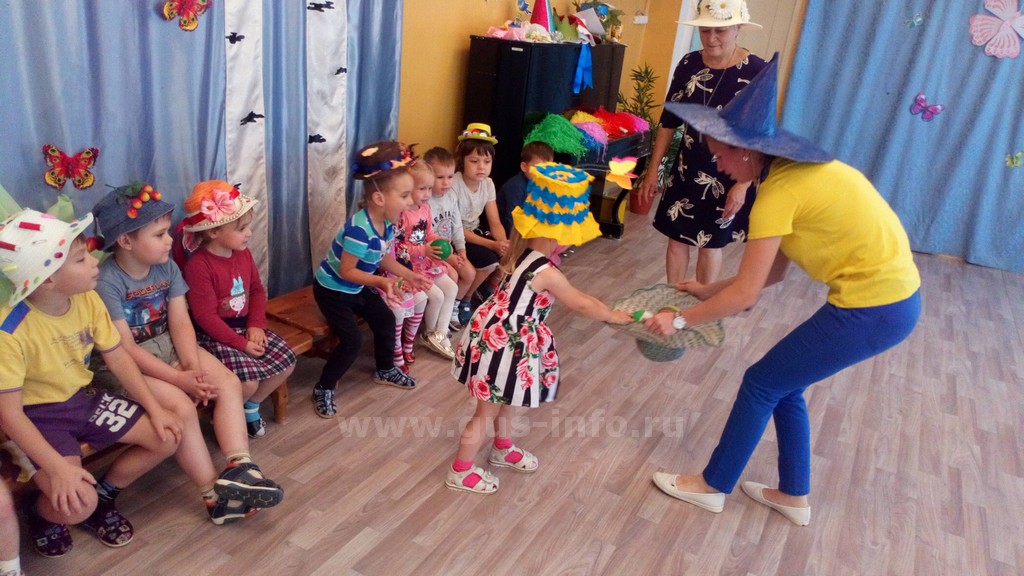 Праздник начался с песни «Лето, лето ты какого цвета?» и зажигательного танца детей старшей группы «Выглянуло солнышко». Зазвучали фанфары и в гости к детям пришла Королева Шляп, увлекшая зрителей и участников в волшебный мир красоты, где ребята смогли повеселиться с задорным Незнайкой и добрым Грибом Боровиком. Дети с удовольствием участвовали в интересных и веселых конкурсах: «Отгадай, чья шляпка?», «Конфетная шляпа», «Попади мячом в шляпу», отгадывали загадки и танцевали.