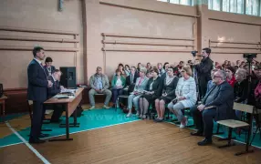 28 августа в Гусь-Хрустальном рабочая комиссия провела встречу с родительским комитетом аварийной школы №13. В мероприятии приняли участие заместитель директора департамента здравоохранения Михаил Соловьёв, глава города Гусь-Хрустальный Алексей Соколов, директора городских школ №13 и №16.