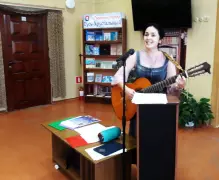 Затем участников встречи порадовала замечательным творчеством бард, поэтесса, педагог Наталья Афанасьева. Авторские песни в её исполнении настраивают на лирический лад и согревают душу.