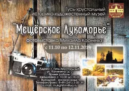 С 11 октября в выставочном зале МБУК «Гусь-Хрустальный историко-художественный музей», расположенном по адресу ул. Калинина д.2, откроется фотовыставка «Мещёрское Лукоморье». Автор прекрасных фотографий, выполненных в технике «шелкографии» - профессиональный фотограф, фото-художник, путешественник, член Русского Географического общества, живущий по соседству с Гусь-Хрустальным, в пос. Тума Рязанской области – Михаил Корнев, всей душою влюблённый в заповедный мещерский край. Он щедро делится со зрителем своими впечатлениями от путешествия по различным уголкам России от янтарного берега Калининграда до Камчатки, но, по его словам, больше по душе картины родной Мещёры в различные времена года.