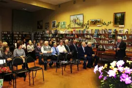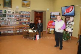 Конечно, в этот вечер прозвучало много одобрительных слов о творчестве и гражданской позиции Анатолия Шарова, цитировались его стихи и фрагменты прозы… Высказались глава района Василий Панин, замглавы администрации Вадим Жарков, председатель городского комитета по культуре Валентина Кустарова, «главная» по культуре в районе Галина Буянова, директор ГБИЦ Марина Сенаторова, директор ГХИХМ Николай Скулов, Николай Лалакин, председатель Совета литобъединения «Мещера» Евгений Шапорев, другие гусевские литераторы, друзья юбиляра Зоя Анашкина (Демидовская СШ), Юрий Гаврилов (г. Владимир)… Прозвучали песни в подарок Анатолию Петровичу. Не обошлось и без подарков как от официальных лиц, так и «простых» поклонников. С интересом публика посмотрела видеоролик Ирины Седовой, посвященный имениннику. На выставочном стенде красовались книги Шарова. Кстати, содержание книг очень хорошо проиллюстрировано и оформлено, что, согласитесь, немаловажно.