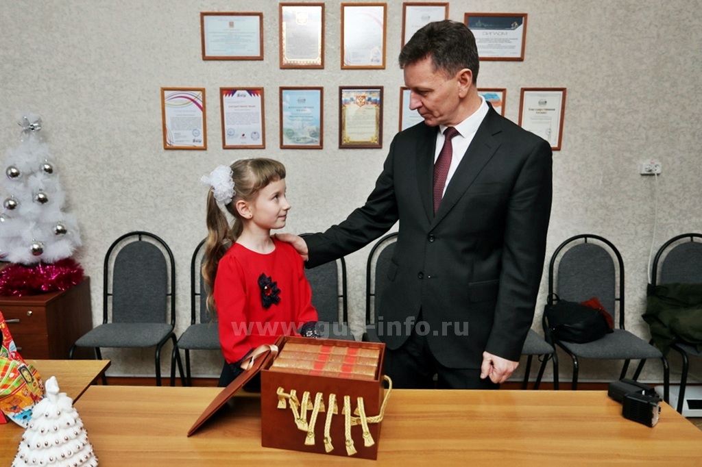 Губернатор Владимир Сипягин передал девочке подарок от главы государства, пожелал ей успехов и поздравил всю её семью с наступающим Новым годом.