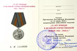 18 января 2020 года в городе Санк-Петербурге состоялось первое вручение Президентом Российской Федерации В.В.Путиным юбилейной медали «75 лет Победы в Великой Отечественной войне 1941 - 1945 гг.» участникам Великой Отечественной войны.