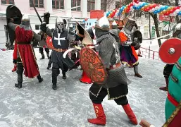 В концертной программе на центральной сцене приняли участие: фольклорный театр "Россы" г. Иваново, с концертной программой "Масленицу провожаем - весну красную встречает!". Центр древнерусских ратоборств и воинских искусств. Дружина ратоборцев "Русичи" г. Меленки, руководитель Сергей Овсянкин, с программой "За Россию - Матушку!"