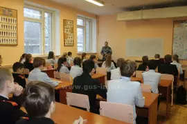 В рамках акции «Неделя мужества» в школе № 10 состоялась встреча учащихся кадетского класса с членом Общественного совета при МО МВД России «Гусь-Хрустальный», педагогом дополнительного образования по военно-патриотическому воспитанию МБУДО «Исток» Эдуардом Коршуновым.