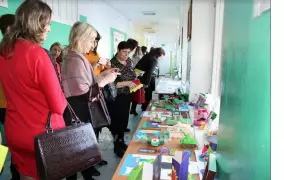 В фойе школы работали выставки «Наша школьная страна», «Подарок для папы», «Героям посвящается…», «Дембельский альбом» и выставка ретро-фотографий «Загляните в семейный альбом».