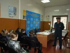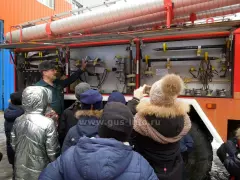27 февраля сотрудниками ГКУ ВО «ЦЗН города Гусь-Хрустальный» была организована экскурсия в пожарно-спасательную часть для учеников Курловской средней общеобразовательной школы. Несколько лет назад в школе уже действовал кадетский класс МЧС и есть планы по его возвращению. Подполковник внутренней службы Бачугин Дмитрий Владимирович провёл для ребят содержательную и интересную экскурсию. В ходе экскурсии четвероклассники ознакомились со спецификой и историей создания пожарной службы, побывали в диспетчерской, куда поступают сигналы из всех точек Гусь-Хрустального района, узнали, как осуществляется связь между диспетчером и машиной спасателей.