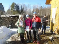 На второй день, в воскресенье, как выше уже было сказано, мы все с удовольствием участвовали в празднике на Красном Якоре. Разрядники во главе с кандидатом в мастера спорта РФ Олесей Гладилкиной в качестве разминки пробежали по карте «нитку» по территории бывшего аэродрома и поселка Красный Якорь. Младшим предложили кросс. Затем началась пробная дистанция Лабиринта. Потом уже каждый, по одиночке, пробежал Пролог 1, после чего наступила очередь прохождения Пролога 2. По итогам обоих Прологов были финалы по разным группам. Выиграли сильнейшие. После финалов было проведено награждение по результатам первенства города 29 февраля. В награждении участвовала ориентировщица Наталья Киселева - представитель администрации города. Награжденные получили не только красивые медали и грамоты горспорткомитета, но и аплодисменты, фотосессию. Затем были разного сорта блины, поджаренные сосиски, торты от родителей. Конечно, мы сожгли красиво оформленную «бабу» (жалко было). Прощай Зима, привет Весна!