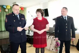 Теплые слова поздравлений прозвучали в адрес Надежды Николаевны Лушиной - вдовы погибшего при исполнении служебных обязанностей участкового инспектора милиции Михаила Лушина.