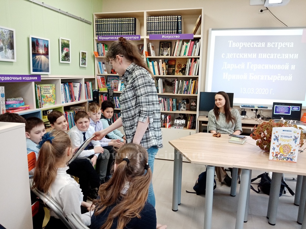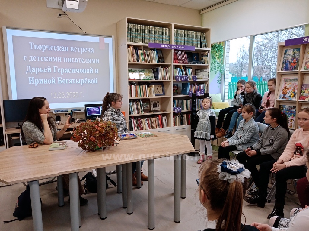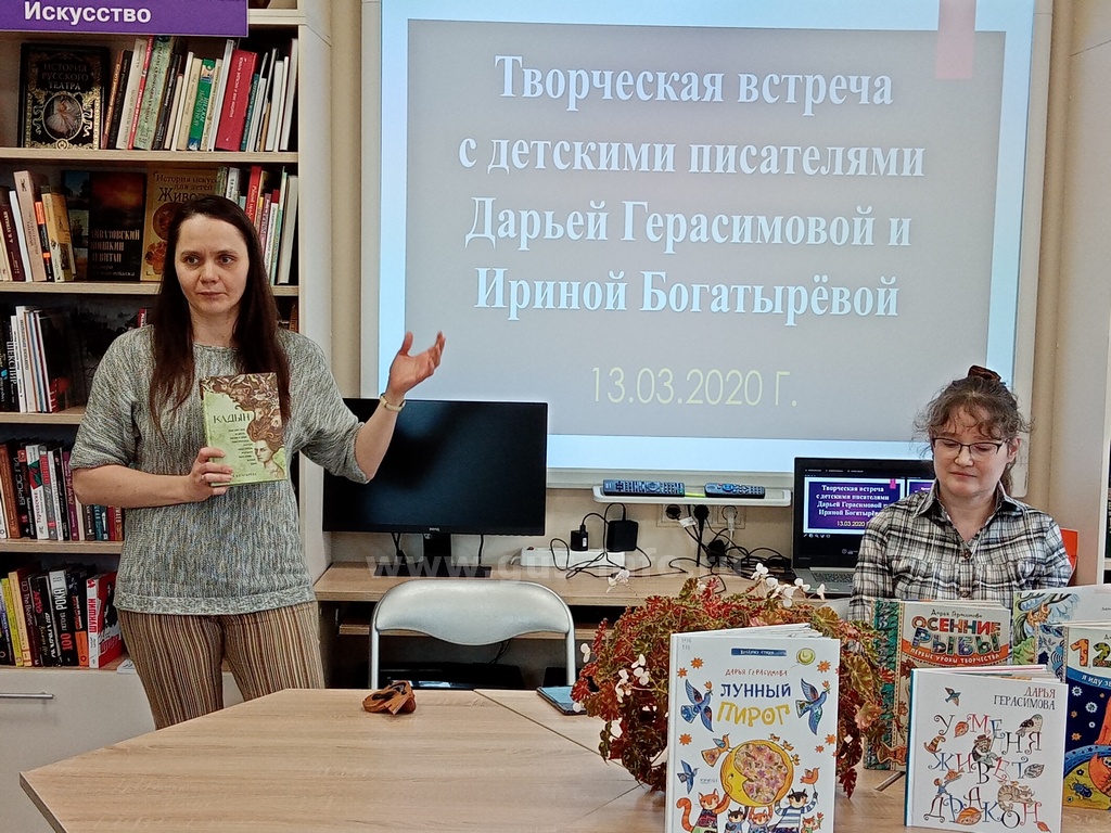 13 марта в читальном зале Григорьевской библиотеки состоялась встреча юных жителей села Григорьево и станции Вековка с детскими писательницами из Москвы Дарьей Герасимовой и Ириной Богатыревой.