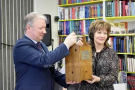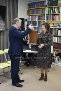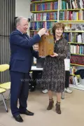 Заместитель главы администрации Селивановского района Сергей Агапов передал этот знаменательный символ Победы заведующей отделом по культуре, физической культуре и спорту, молодежной и социальной политике администрации Гусь-Хрустального района Галине Буяновой.