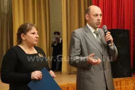 Концертную программу в актовом зале колледжа открыл зам директора колледжа Тарлаков В.С. и выпускник колледжа Зарипов Р.Ш – депутат Совета народных депутатов МО г.Гусь-Хрустальный.