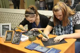 22 ноября 2012 года Гусевский стекольный колледж гостеприимно распахнул двери для всех желающих посетить стены этого динамично развивающегося учебного заведения. Все желающие ознакомились с предлагаемыми профессиями и получили любую интересующую информацию, в т.ч. воспользовались возможностью пройти тест на профессиональные предпочтения. День открытых Дверей стал традиционным мероприятием и явно не для галочки. В подготовке и проведении этого праздника участвовали: ГКУ ВО «ЦЗН города Гусь-Хрустальный», студенты и преподаватели колледжа. А посмотреть было что: выставка в фойе, на которой были представлены новые демо-версии компьютерных программ по специальности «Прикладная информатика», в т.ч. выполненных по заказу предприятий города, интересные представления специальностей в форме презентаций (полная информация о всех специальностях в колледже), тестирование на профессиональную ориентацию, проведенную ГКУ ВО «ЦЗН города Гусь-Хрустальный». Особую заинтересованность у учащихся школ вызвали работы подготовленные студентами специальности «Производство тугоплавких неметаллических материалов и изделий». Эти работы были представлены витражной росписью стекла, фьюзингом, гравировкой, а также стеклодувными работами.
