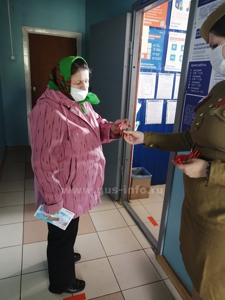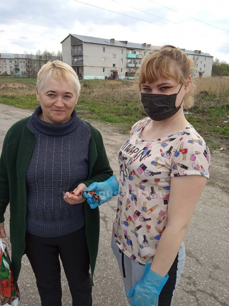 Волонтеры, работники сферы культуры, сотрудники отдела по вопросам спорта, семьи и молодежи приняли активное участие в раздаче Георгиевских ленточек на территории Гусь-Хрустального района. Каждый желающий смог стать обладателем знаменитого символа Великой Победы. Не обошлось и без творческого подхода. Директор дома культуры поселка Красный Октябрь Мария Козлова своими руками изготовила оригинальные атрибуты из Георгиевских лент.