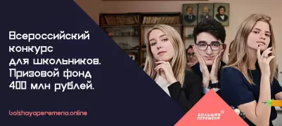 Стартовал Всероссийский конкурс для старшеклассников «Большая перемена». Он направлен на выявление и формирование сообщества школьников с активной жизненной позицией, лидеров мнений. К участию в конкурсе приглашаются школьники в возрасте от 14 до 17 лет.