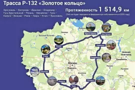 Федеральная трасса Р-132 теперь связывает между собой все города популярного туристического маршрута «Золотое кольцо». В её состав включили 944 км региональных дорог, на сегодняшний день общая протяженность трассы составляет 1514,9 км.