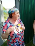 Вместе с открытками и продуктовыми наборами волонтеры поздравляли пожилых людей с Днем России и вручали им памятные ленточки в цветах Российского триколора.
