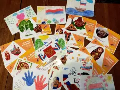 Дети красиво оформили поздравительные открытки, нарисовали рисунки, а волонтеры передали их вместе с продуктовыми наборами в рамках всероссийской акции взаимопомощи «#МыВместе».