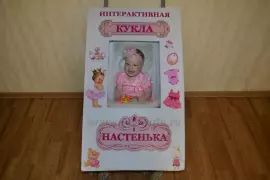 Тематикой украшения коляски стал образ куклы в коробке и называется «Интерактивная кукла Настенька».
