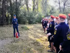 Затем Наталья Гурина провела мастер-класс по обращению с порошковым огнетушителем, который ребята затем опробовали в действии. Вхождение в мир знаний по пожарной безопасности состоялось! А задорно прозвеневший колокольчик и общая фотография в форме и оранжевых беретах ознаменовали вступление в новую жизнь. В жизнь кадета МЧС.