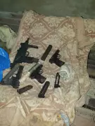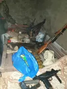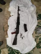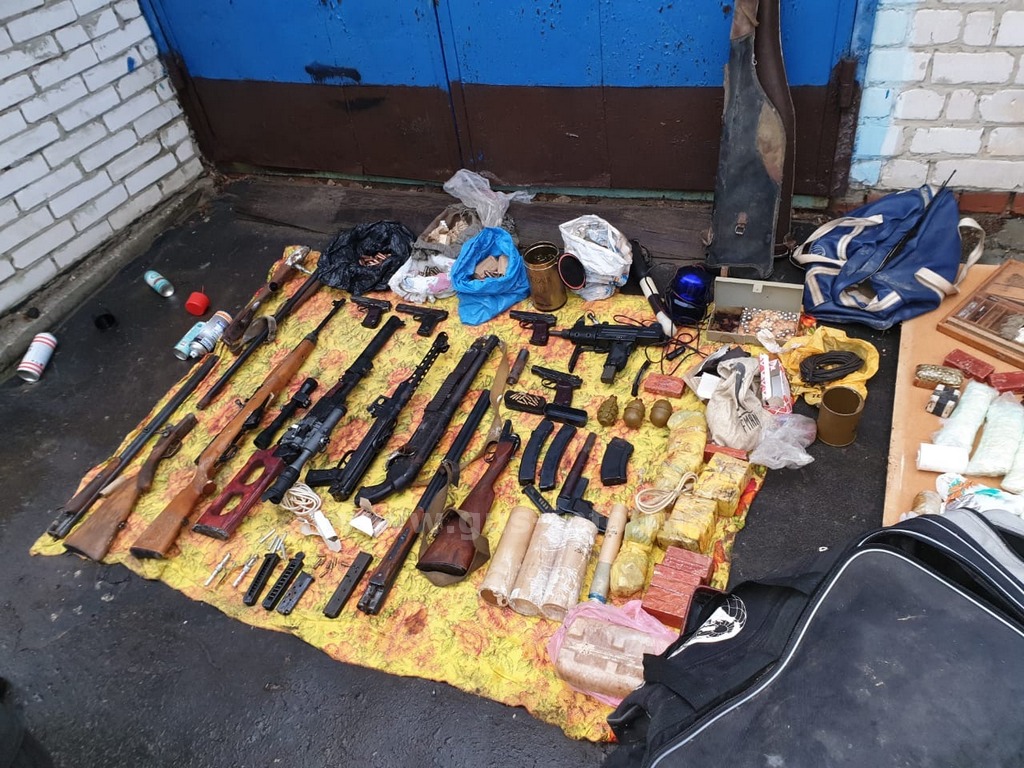 В ходе обыска изъяты: автомат, снайперская винтовка, два самодельных взрывных устройства, пистолеты, пистолеты-пулеметы, пакеты с взрывчатым веществом (тротил, пластид), гранаты, более двух тысяч патронов и иное оружие и боеприпасы.
