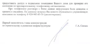 Второй отозвалась администрация муниципального образования города Гусь-Хрустального, которая проинформировала жильцов дома 21 по улице Красноармейской, что руководством ООО «РТЭК» было отказано в предоставлении расчётов и документов, подтверждающих правомерность проведённых перерасчётов ОДН и проведении совместной проверки. Однако в телефонном разговоре с представителем управляющей компании М.Г. Малековой в устной форме было сказано, что по предварительному согласованию сотрудники администрации смогут получить доступ в подвальное помещение. Абсурд. Общедомовое имущество, принадлежащее всем жильцам дома превращено в секретный объект.