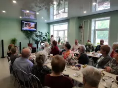 Праздник - это не только застолье и подарки, но и отличное настроение, позитивное общение, что о них помнят и конечно цветы. Огромное спасибо спонсору Голубеву Р.А., директору «Гусь-Хрустального комплексного центра социального обслуживания населения» Крошкиной Наталье Геннадьевне, заведующей отделением дневного пребывания граждан пожилого возраста и инвалидов Грибовой Алле Викторовне. По окончанию праздничного мероприятия С. Иванов пожелал дорогим нашим детям военной поры низкий поклон! Здоровья, счастливого долголетия, тепла, благополучия и процветания! Поздравил с самым искренним и светлым праздником – Днем Победы!