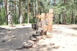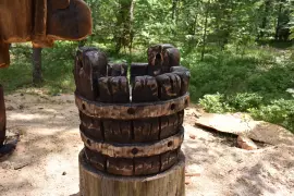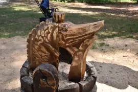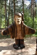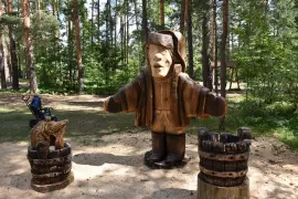 Речь идет о Емеле из детского произведения «По щучьему веленью». Он появился в гусевском лесопарке «Сказка» недавно, воплощен в жизнь мастером-краснодеревщиком Игорем Володиным. Напомним, что скульптурная форма – Емеля с ведрами, в одном из которых «пристроилась» задумчивая щука – была выбрана неслучайно. В конце прошлого года в Гусь-Хрустальном проходил конкурс среди воспитанников Детской школы искусств им. М.А. Балакирева, организованный этим учреждением совместно с благотворительным фондом «Шаг в жизнь», в рамках которого был определен лучший сказочный макет. Победителем стал Денис Белокопытов, который набрал более 2000 голосов.