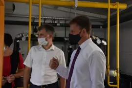 7 июля в Гусь-Хрустальный с рабочим визитом побывал Губернатор Владимирской области Владимир Сипягин. В программе поездки был запланирован осмотр строительства новой блочно-модульной котельной (БМК) школы №16. Сопровождал и давал пояснения Губернатору региона глава города Алексей Соколов.