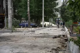 Глава города Алексей Соколов проинспектировал ход работ по благоустройству двора на ул. Муравьева-Апостола