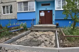 Во дворе дома №19 будут полностью заменены подходы к подъездам, организован новый проезд вдоль дома, установлены урны и лавочки.