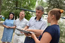 21 июля глава города Алексей Соколов совершил инспекционную поездку на улицу Муравьева-Апостола. Здесь у дома №19 ведутся работы по благоустройству дворовой территории в рамках федеральной программы «Формирование комфортной городской среды» национального проекта «Жилье и городская среда». Вместе с депутатом городского Совета Дмитрием Сахаровым, представителями «Службы единого заказчика», подрядчиком и жильцами дома было проведено обсуждение благоустройства.