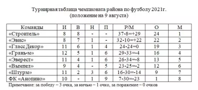 В прошедшие выходные дни состоялись очередные календарные матчи чемпионата района по футболу. С одинаковым счётом 1:1 в посёлке Красный Октябрь сыграли местный «Гласс Декор» и красноэховский «Штурм», а в г. Гусь-Хрустальный ФК «Грань-м» и ФК «Анопино».