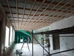 В поселке Добрятино Гусь-Хрустального района продолжается капитальный ремонт дома культуры. Начался он в августе текущего года в рамках региональной подпрограммы «Развитие и модернизация материально-технической базы муниципальных учреждений культуры Владимирской области». В концертном зале разобрали сцену, потолок, стены и пол, освободили помещение от кресел. Подготовили поверхности к косметическому ремонту. В фойе демонтировали входную группу.
