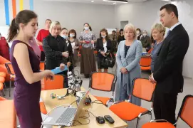 Для приглашенных гостей была проведена обзорная экскурсия по Центру. Гости посетили многофункциональные аудитории для персонального и группового консультирования, проведения семинаров, практикумов и мероприятий, студии для создания видеоконтента, демонстрации опытов, коворкинг-пространство, познакомились с современным оборудованием, необходимым для обучения и совершенствования профессионального мастерства педагогов.
