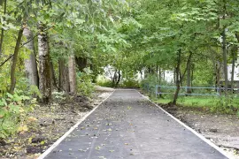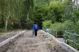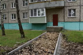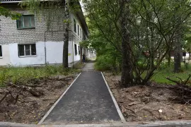На текущий момент здесь завершается основной комплекс работ: произведен демонтаж старого асфальтового покрытия, полностью заменен бордюрный камень, обустроены подходы к подъездам. Согласно плану благоустройства завершающим этапом станет укладка асфальтового покрытия дворовых проездов, установка лавочек и урн.